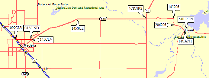 (via Madera and 145) to meet people from Southern Cal (via Fresno and 168).