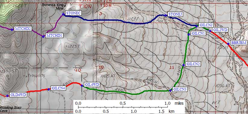 The Bonanza King Mine road (left or northwest turn at waypoint BBRJBM)