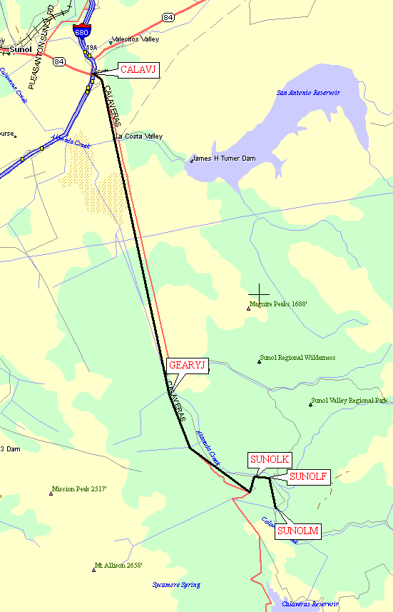 (waypoint CALAVJ) about 8.5 miles south of I-580 or about the same