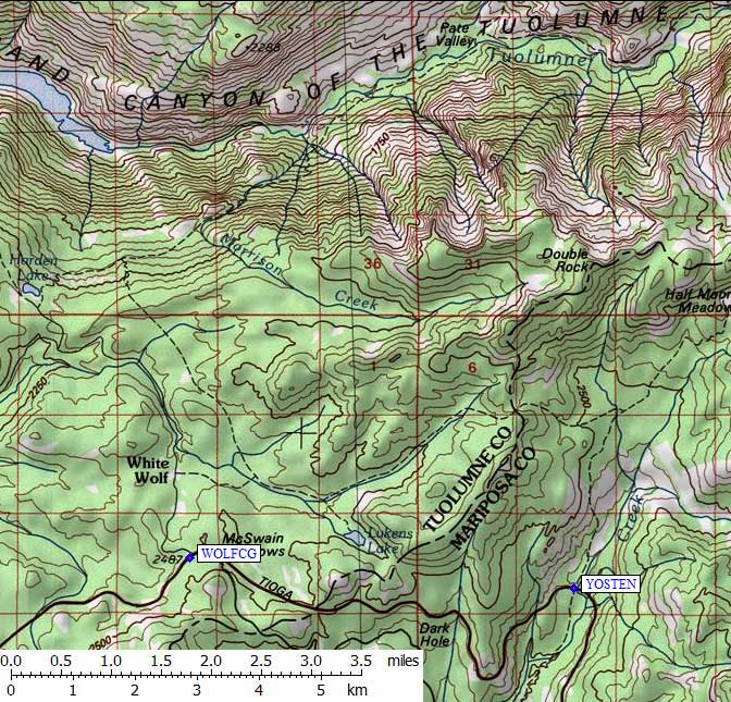 The White Wolf campground (leave Hwy 120 at waypoint WOLFCG)