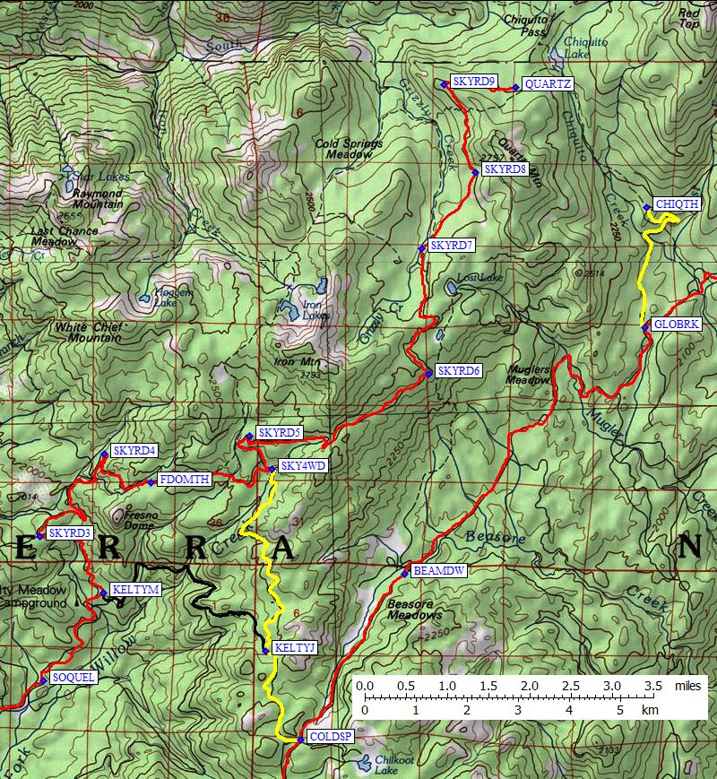 See GPS routes OAKHURST-CHIQUITO, OAKHURST-QUARTZ, and BEASORE TO SKY RANCH.
