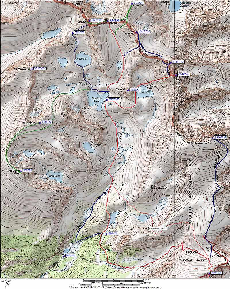 LeConteCorcoran Route Lines Our route on Corcoran - yellow going up, red going to LeConte: (click to enlarge)