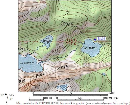 1. BA03 is a standard box, at about 9900 feet, in the GPS route BIG ARROYO.