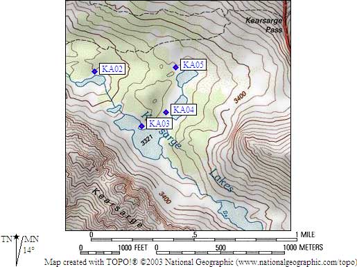- Scroll down for a regional map of the entire Kearsarge Area Eastern Rae Lakes Loop region.