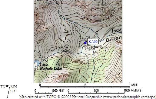(lat,lon) = (36.7724600, -118.3409400) in decimal degrees, NAD83. (zone,east,north) = (11S, 380411.0, 4070273.0) in decimal meters, NAD27.