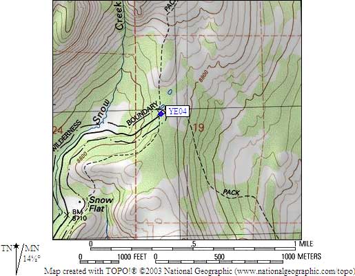 1. YE04 is 10 large boxes, at about 8200 feet, in the GPS route YOSEMITE EAST.