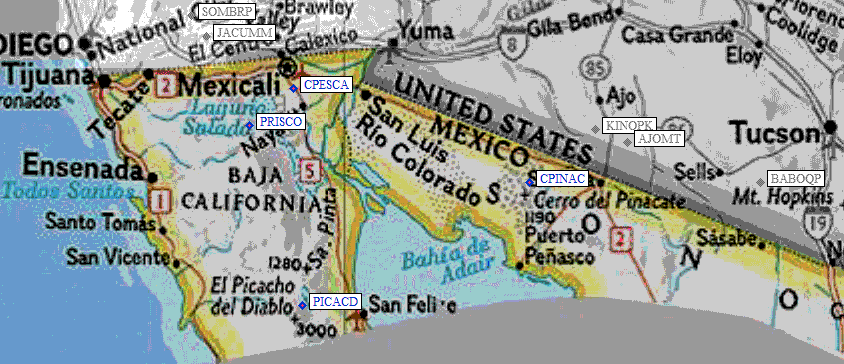Cerro Pescadores is the DPS name for the point in the Sierra Cucapa at 32°20’N, 115°21.7’W, about 20 miles south of Mexicali. It is 1.5 km SE of benchmark Puerta.