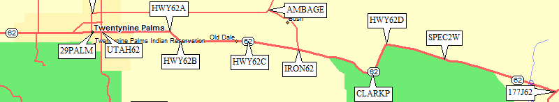of Twentynine Palms (waypoint 29PALM) and 12 miles west of where