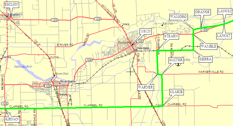First, the standard route along Hwy 120 - OAKDALE NORMAL: