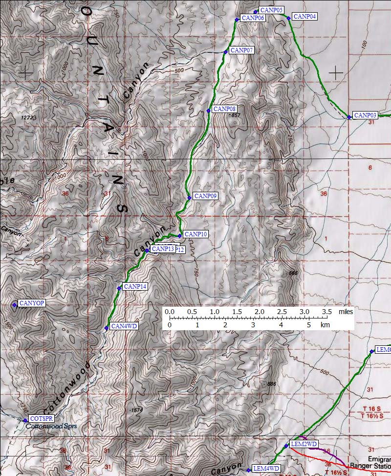 See this 2010 trip report for waypoints and details of Lemoigne Canyon and the backpack to Cottonwood Springs.