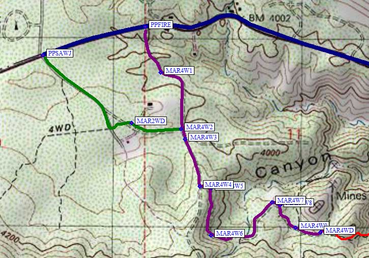 highway (waypoint MAR4W7), then immediately took a right fork (waypoint MAR4W8)