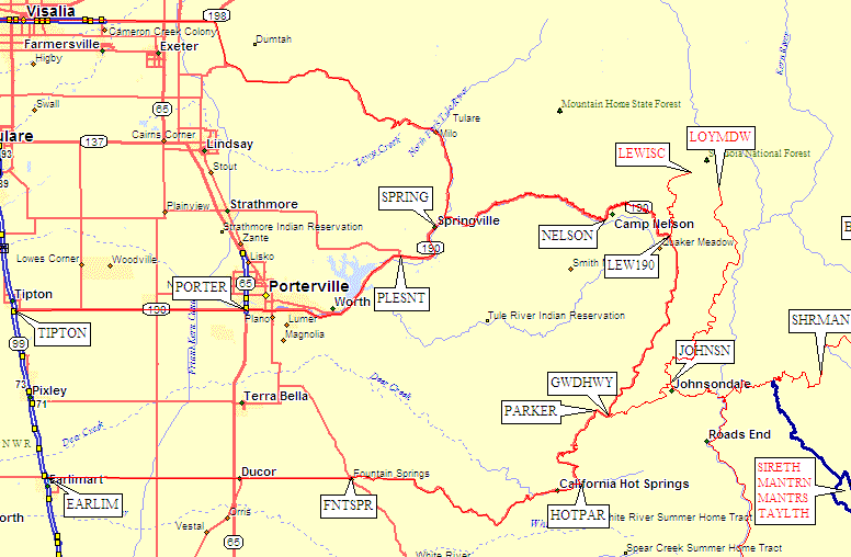5. Porterville and Camp Nelson - see local map above - GPS Route CAMP NELSON
