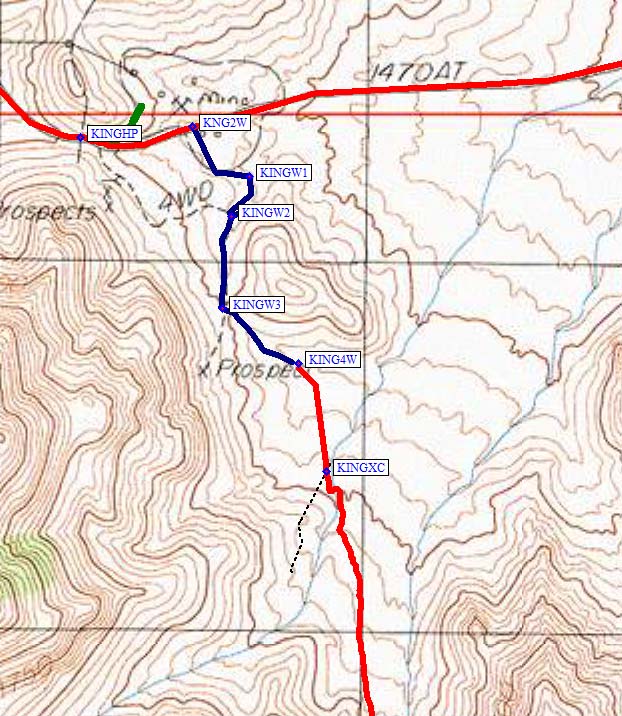 and continue UP to high point of road by the an abandoned mine (waypoint KINGHP).