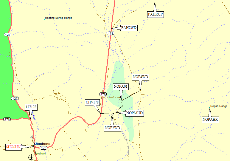 on Hwy 127 through Shoshone (waypoint SHOSHN, the only filling station