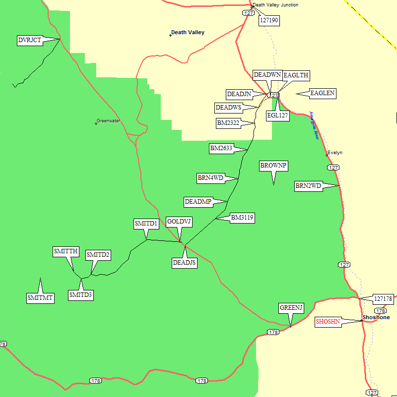 Hwy 127 is paved, and the reasonably good Greenwater Valley dirt road (suitable for passenger cars) goes all the way past Dante's View turnoff (waypoint DVRJCT) to intersect Hwy 190 in the