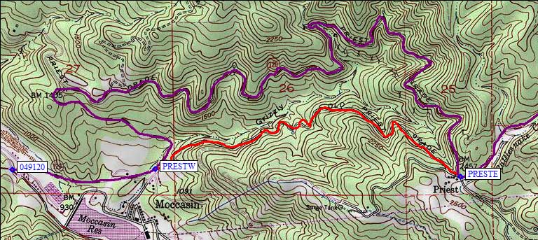 and narrow shortcut called Old Priest Grade (between waypoints