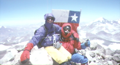 We only got 2 people out of 6 to the summit, but we got everyone home without injury. Several people set personal altitude records on peak day. On the other hand, no one really wanted to hang around for an attempt at Tres Cruces or Pissis. The Belgians found a duffel bag that bounced off our truck on the way back, the Chileans got written up as heroes in the local paper (apparently with little mention of the rescue by two other nations), and we found that Becker beer tastes better than Cristal. We all headed home the next day, arriving in San Francisco with a major storm in progress. One week later I heard that Peru has bad flooding, and that it rained in the desert town of Copiapo, so perhaps our timing was good after all! No on ever "conquers" a mountain, and El Nino is real: you must sneak up between tantrums.