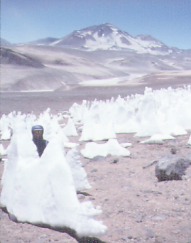 I should clarify that these day hikes were anything but exciting. The peaks were all 18k and higher, out of range for the kind of conditioning we were after. We just walked over sand and talus until the altimeter said to turn around. Ugh. This year, definitely due to El Nino, there were penitentes (spikes of melted ice up to 2 meters high) as low as 15k. These could have provided good drinking water, but we just used them as backdrops for pictures.
