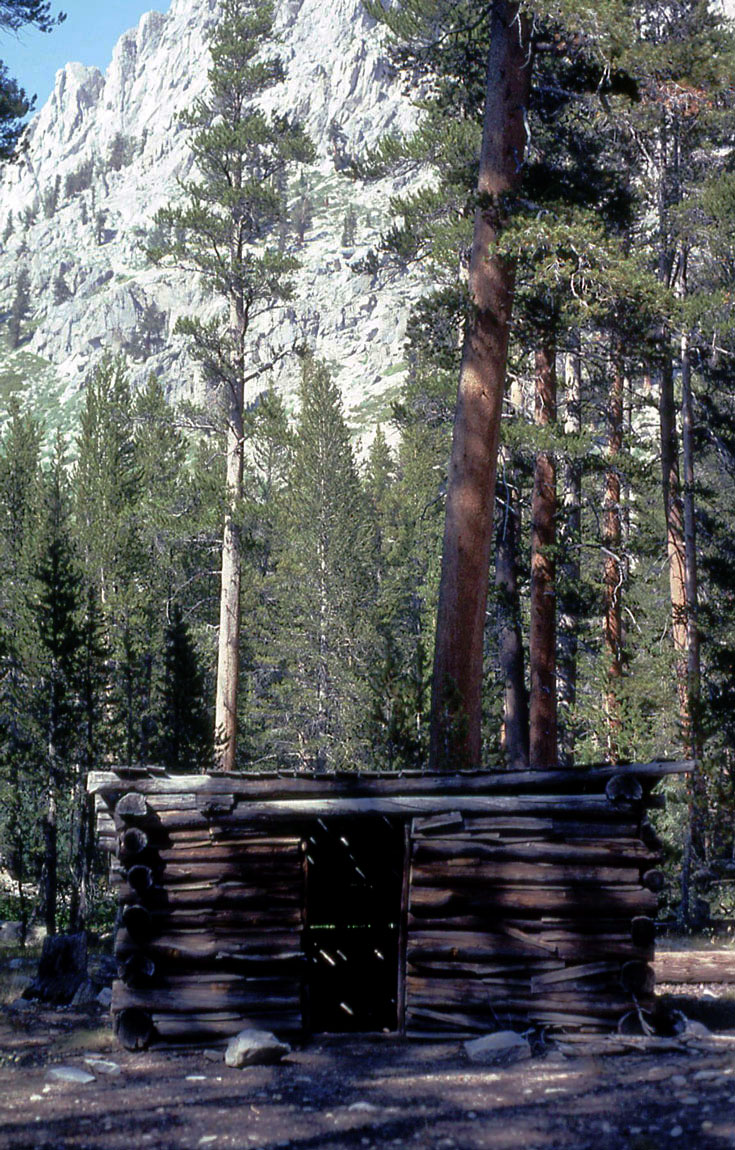 First Day, Hike In: Early the next morning we made the familiar five-mile crawl up Kearsarge Pass and down to the Bullfrog Lake Creek and Muir Trail junction for lunch and to soak our feet. A short hike then took us down to Vidette Meadows and south on the Muir Trail a short distance to the bear box campsite. This campsite had a great view of the North Face of East Vidette and also was quite close to the Vidette Lakes trail.