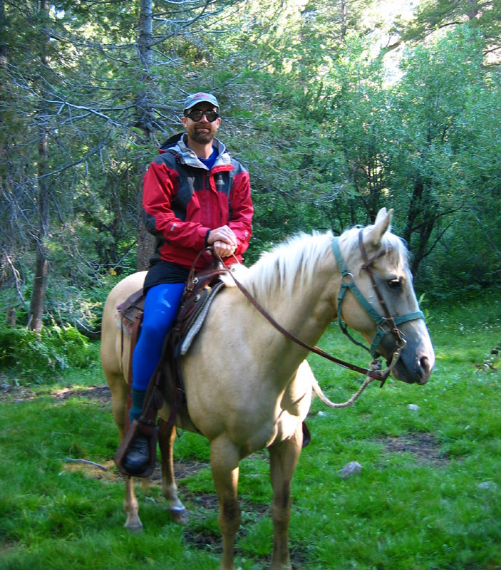 We left Junction Meadow late because that's how it's done with horses. I was supposed to walk up to East Lake with my day pack and have my full pack delivered, but since an empty saddled horse was being taken up to bring down a paying client, David invited me to hop on. I'm no horseman, I've only done short resort rides, but I couldn't say no.