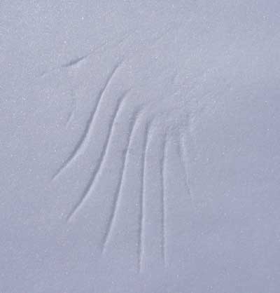 A grouse flushed out from under an iced tree, and left wing prints like these as it struggled to get airborne.