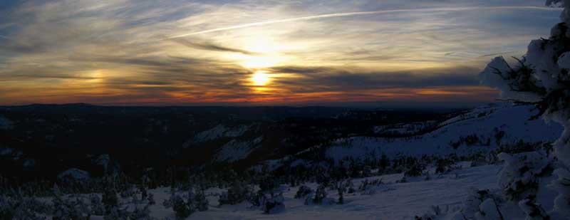 Becker Peak(8300') is as far as any old tracks went. It's a nice rocky outlook from which you could look down on Lower Echo Lake (not completely frozen, in January!) and the solid fog bank that hid Lake Tahoe all day.